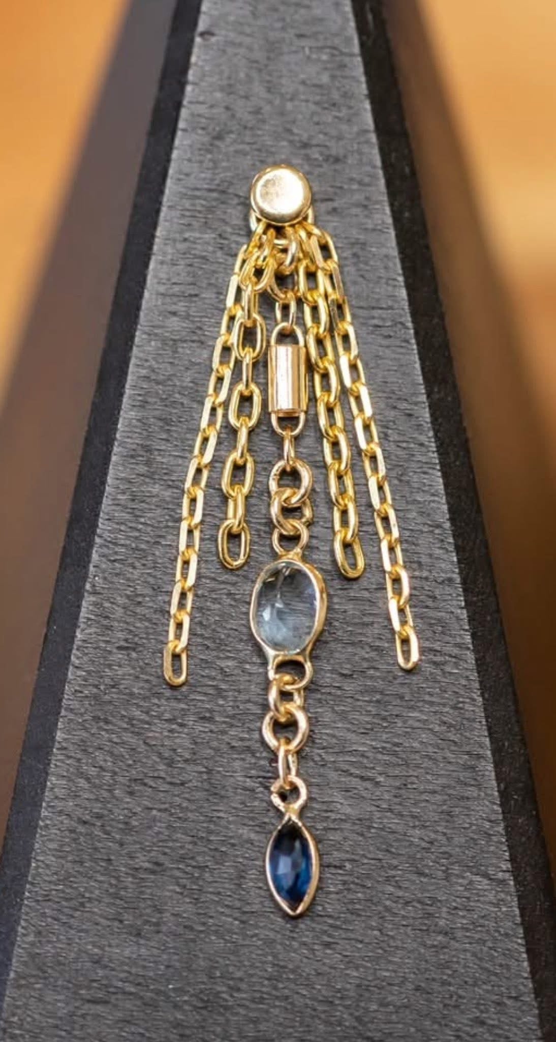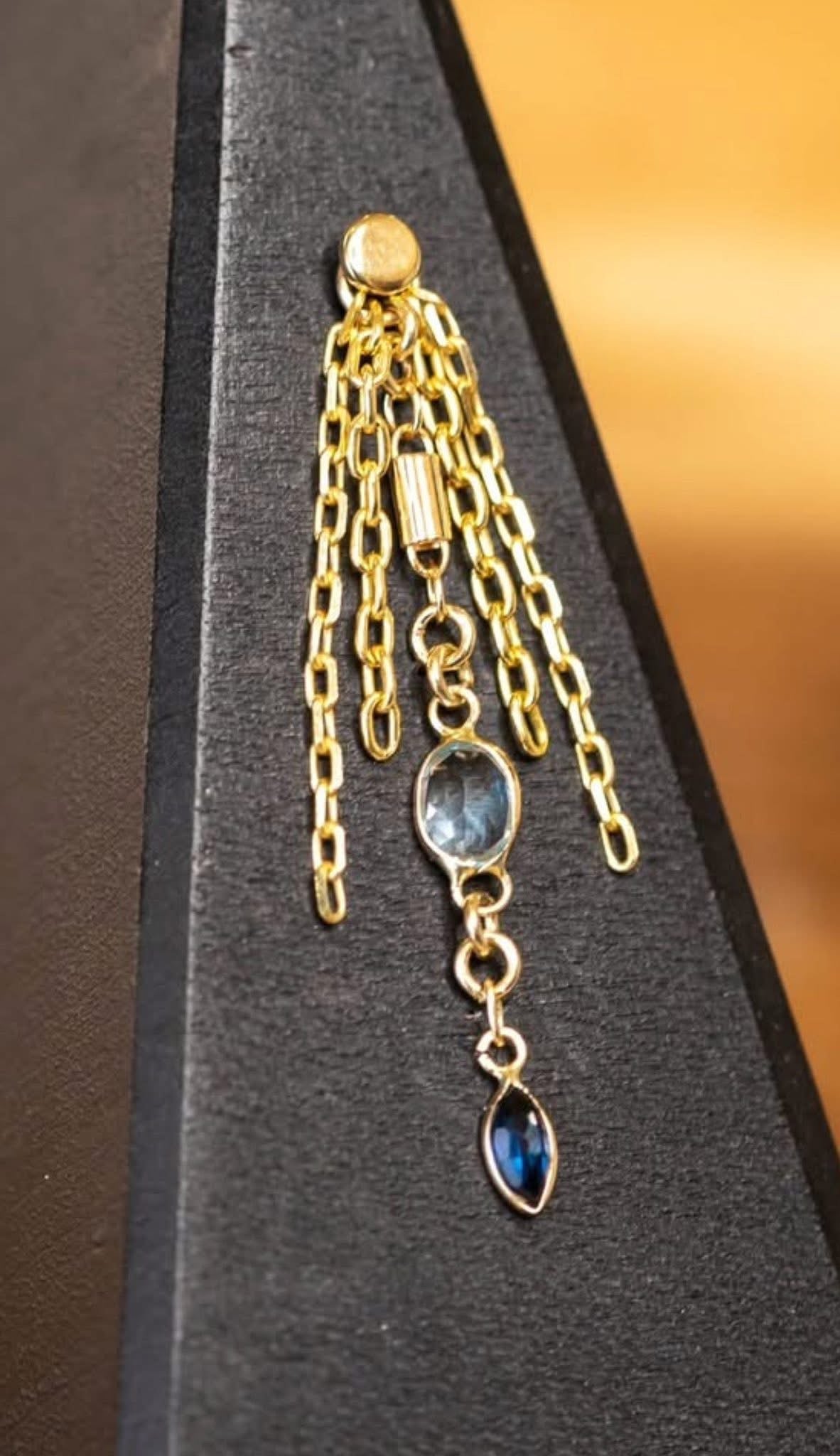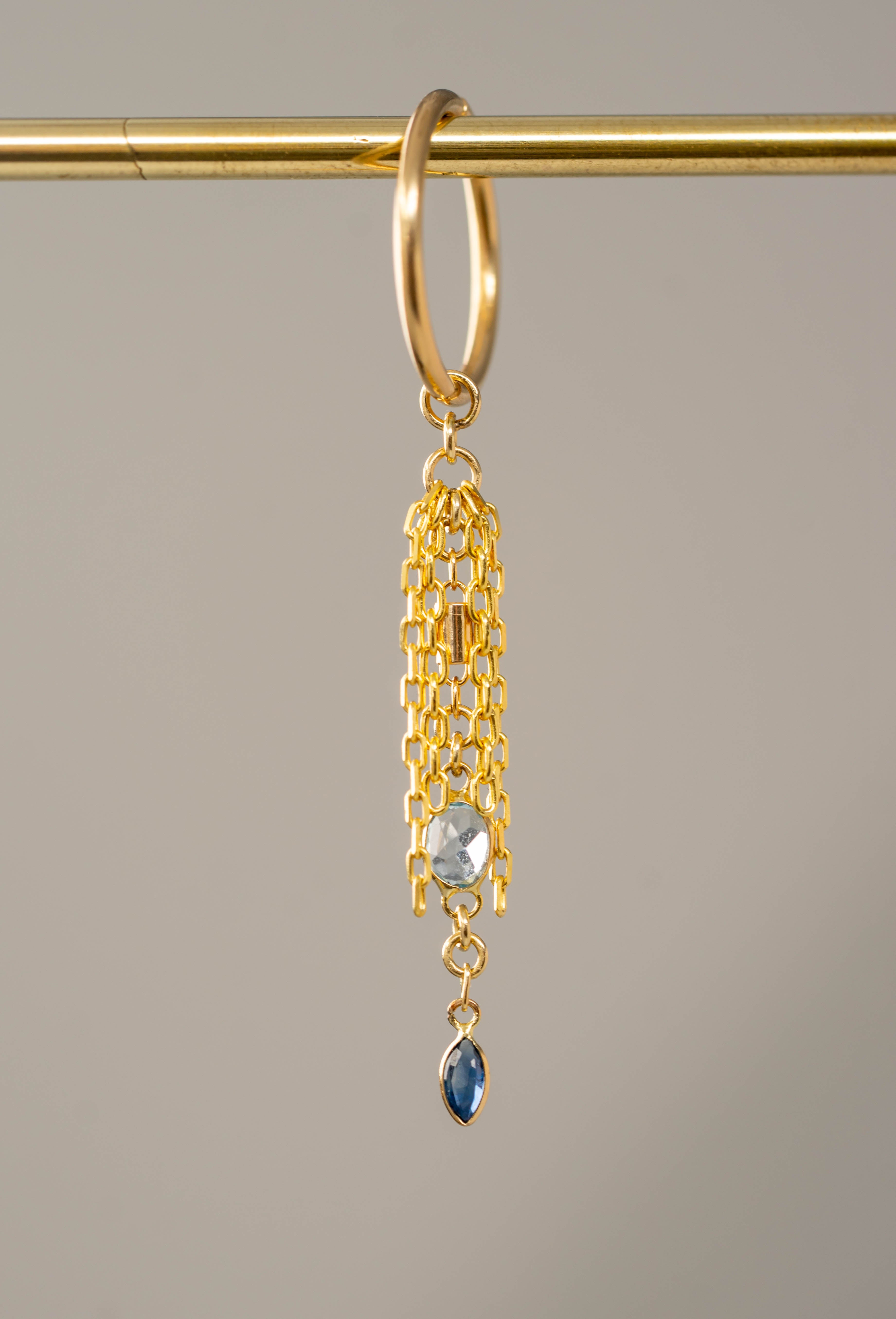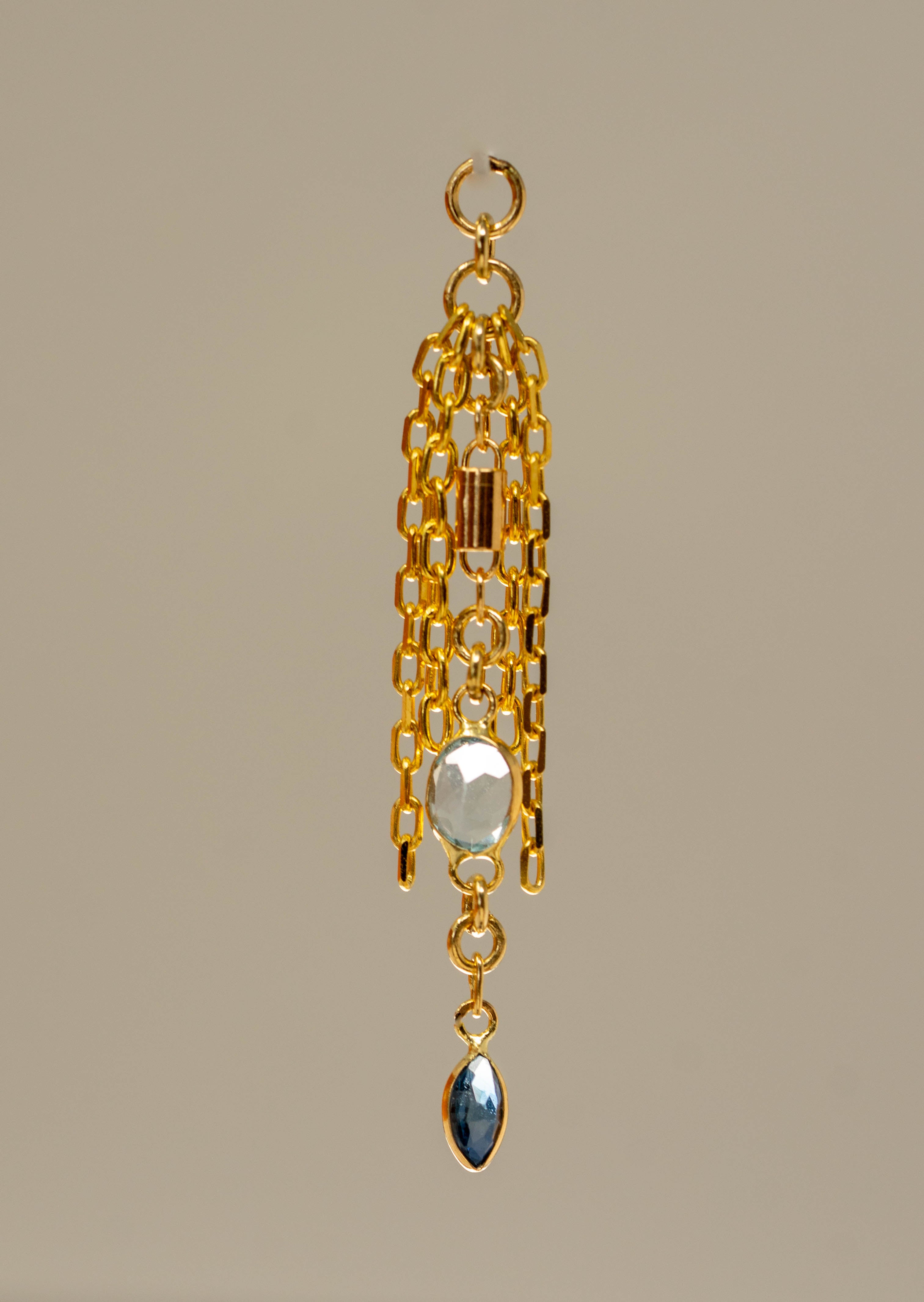14k GOLD 5 CHAIN CHARM - LIGHT BLUE TOPAZ - BLUE SAPPHIRE