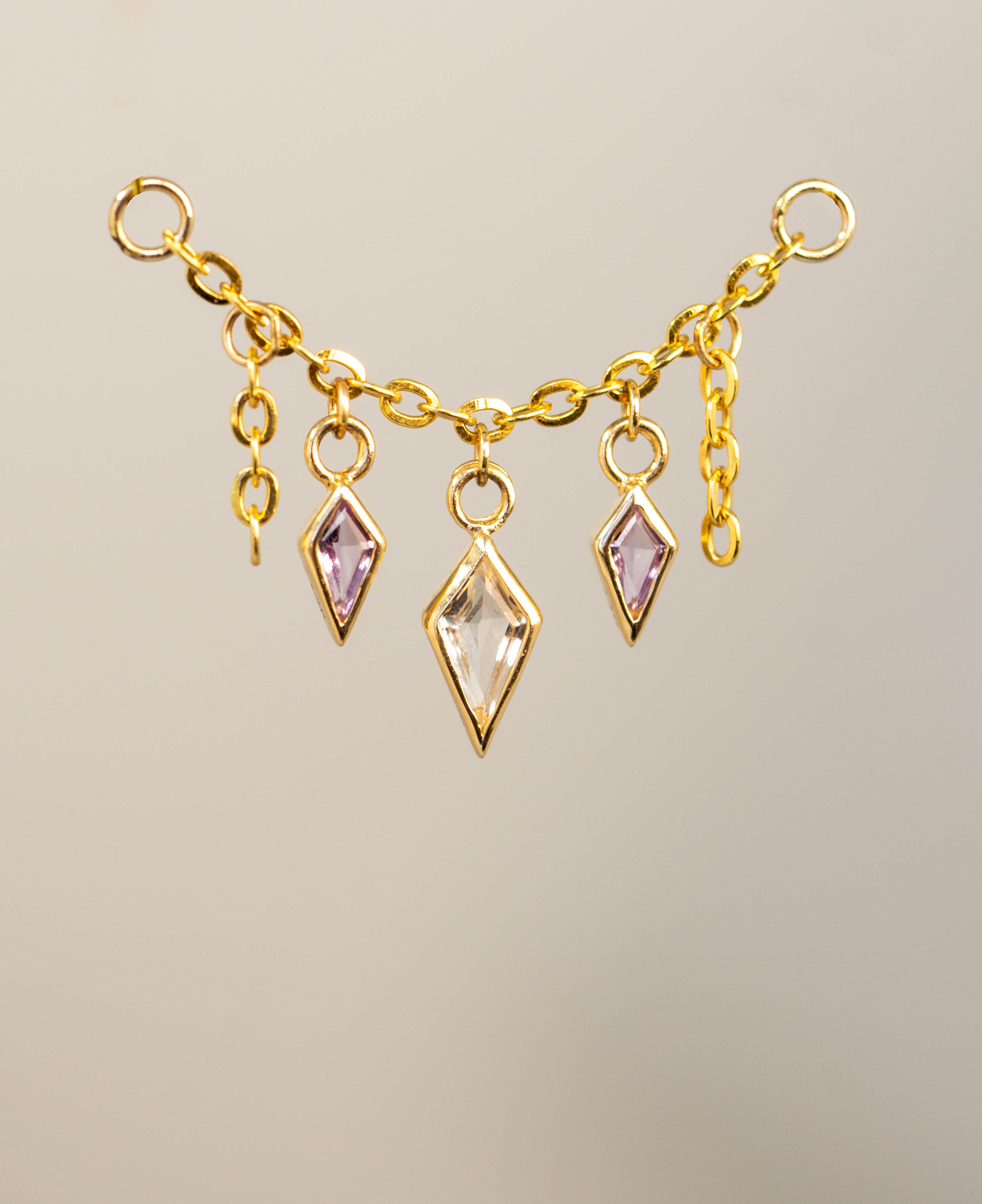 14K GOLD AMETHYST AND WHITE TOPAZ KITE CHAIN