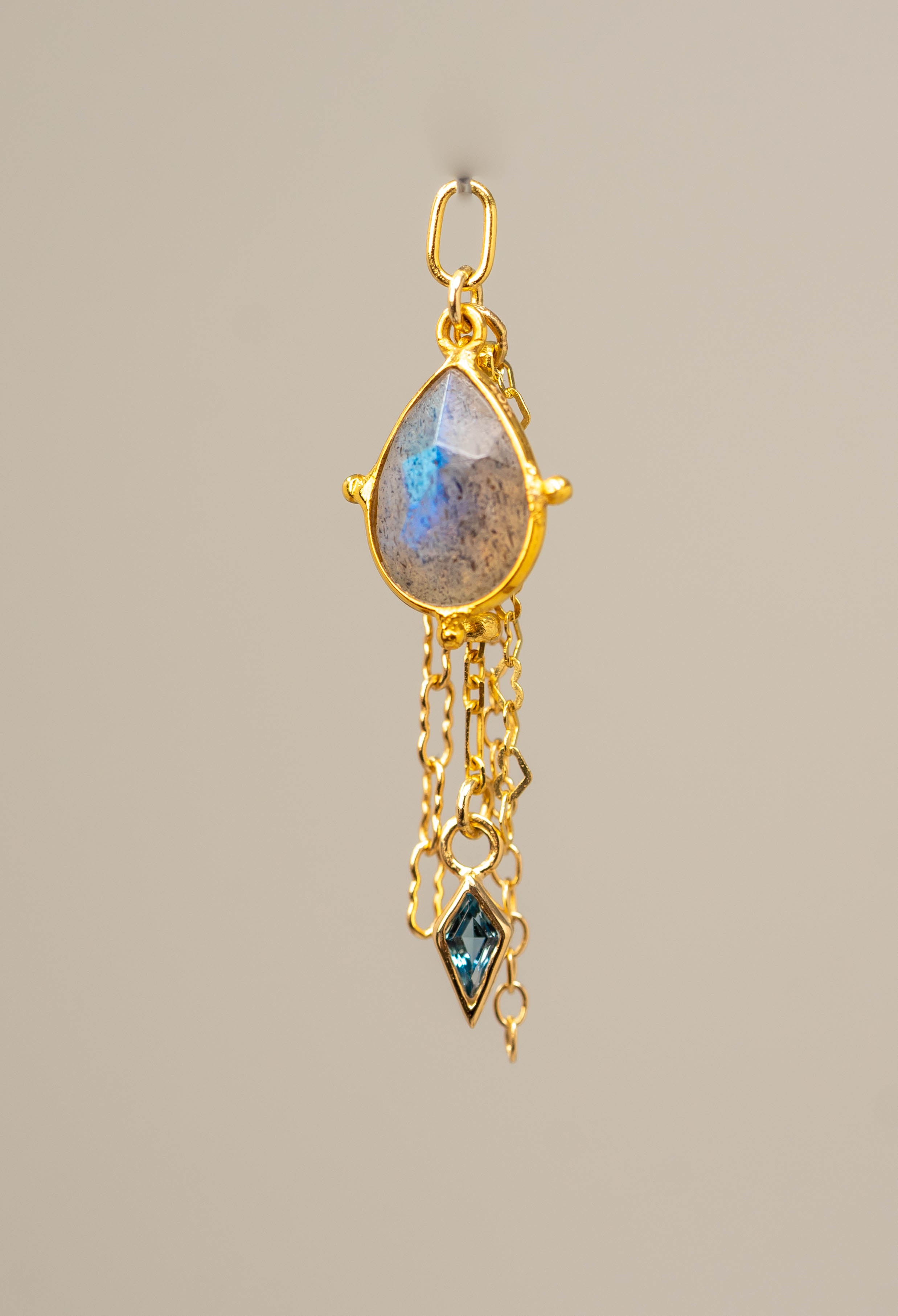 14K GOLD LABRADORITE AND LONDON BLUE TOPAZ CHARM