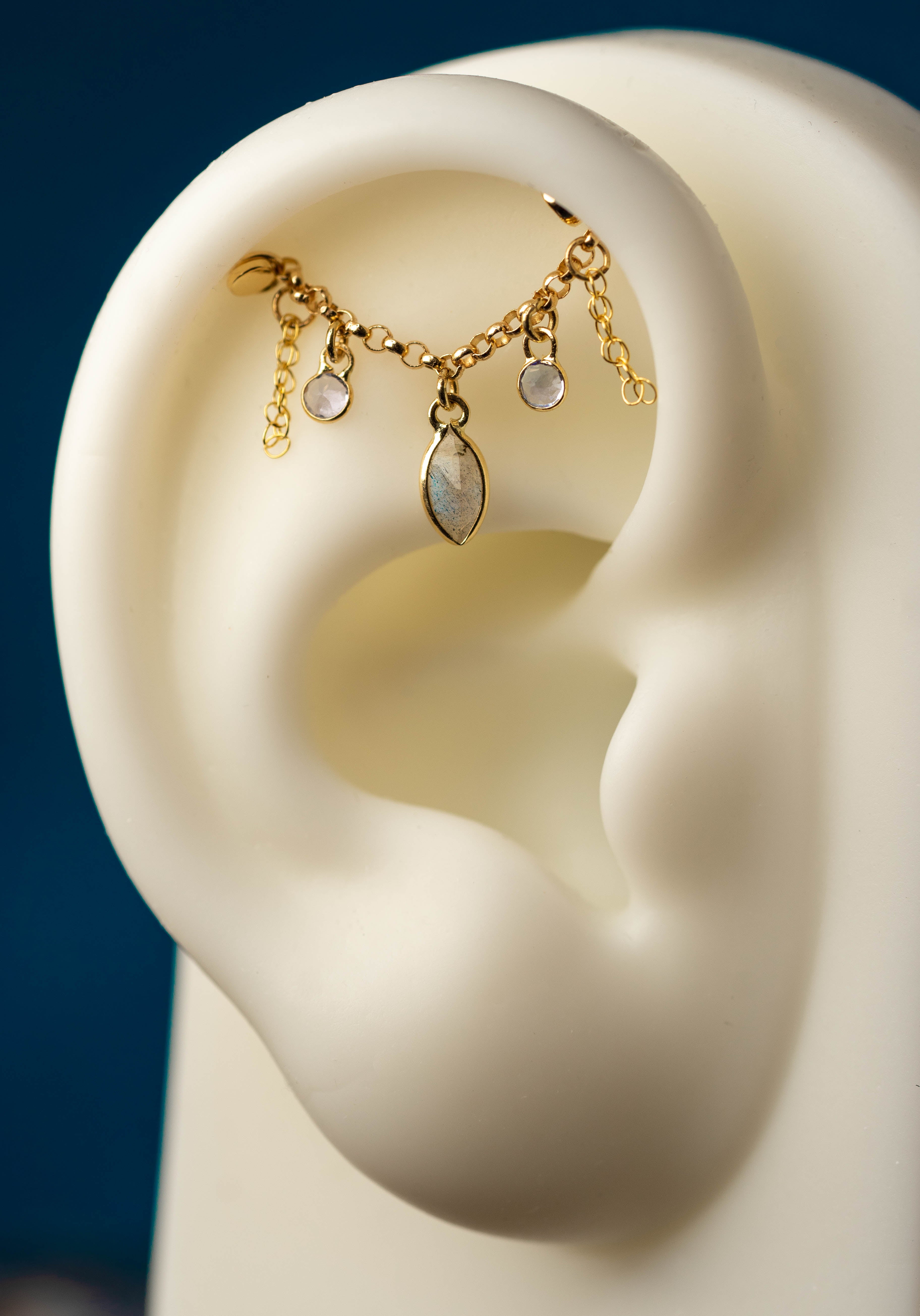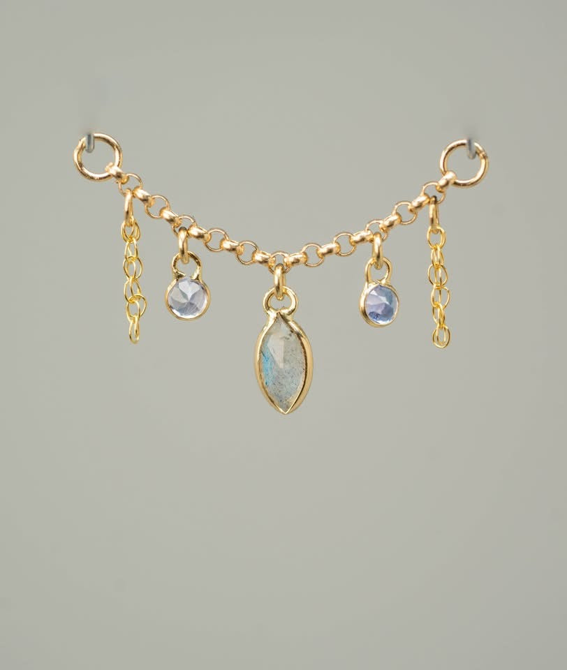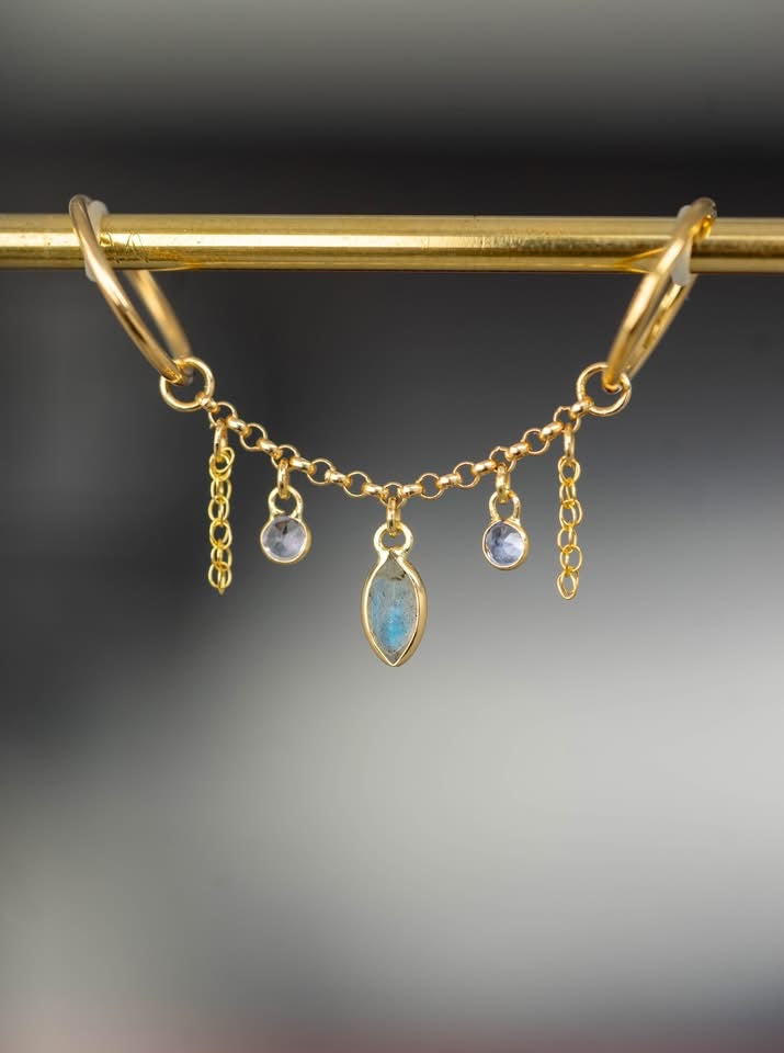 14K GOLD LABRADORITE AND TANZANITE EAR CHAIN