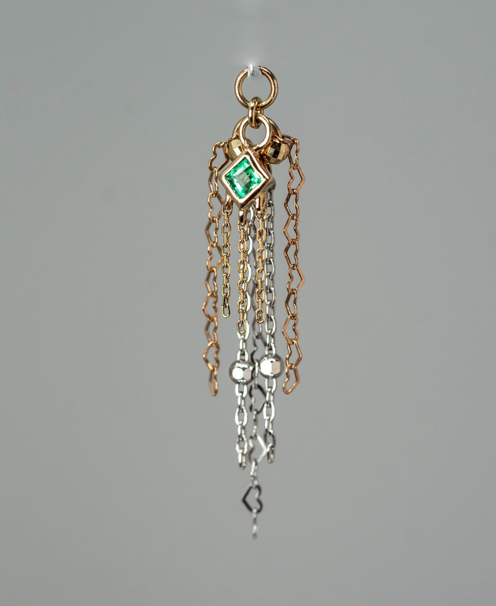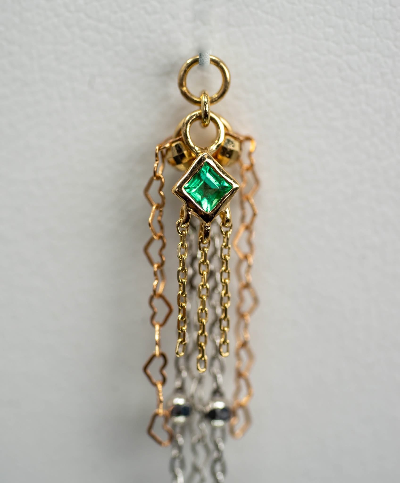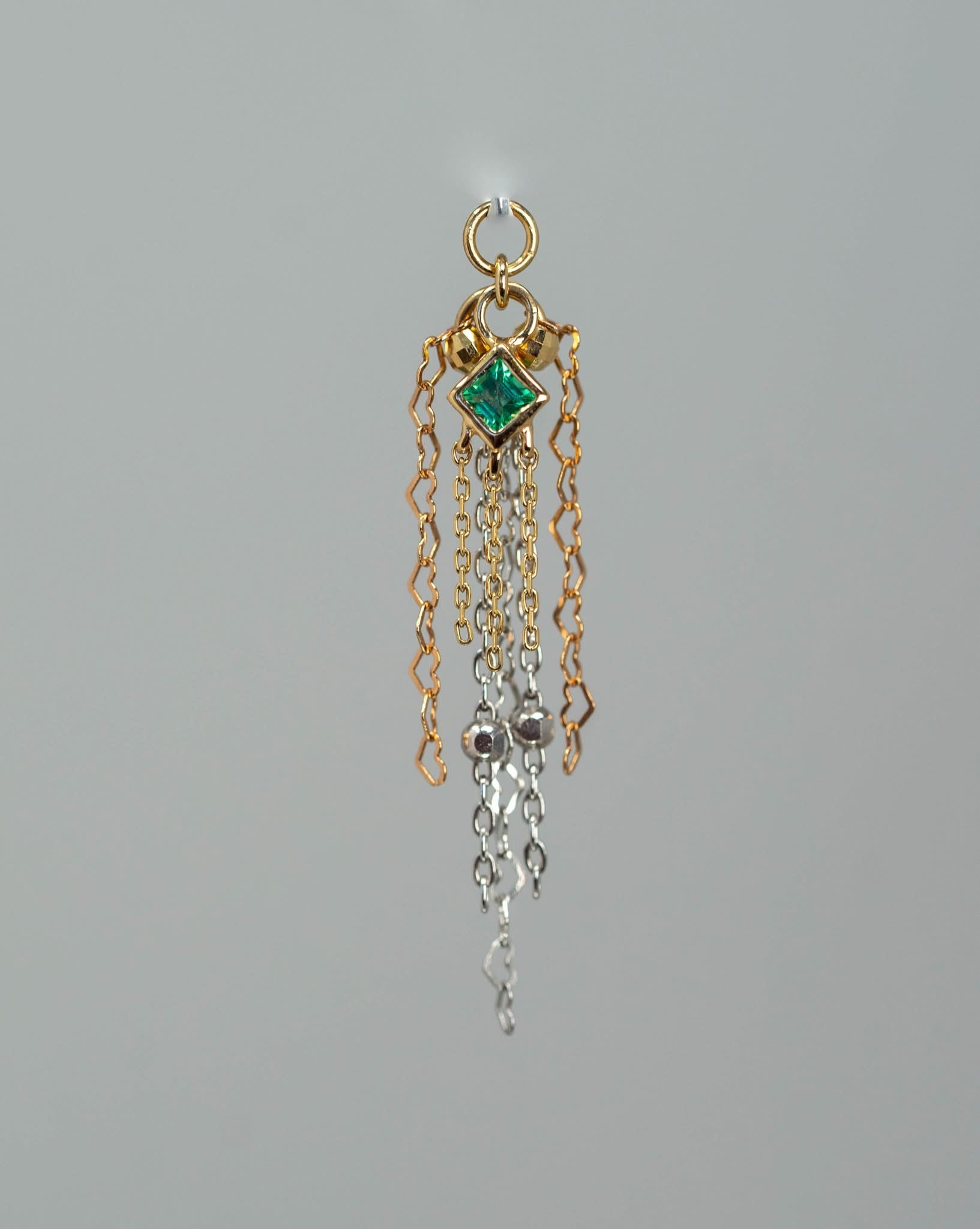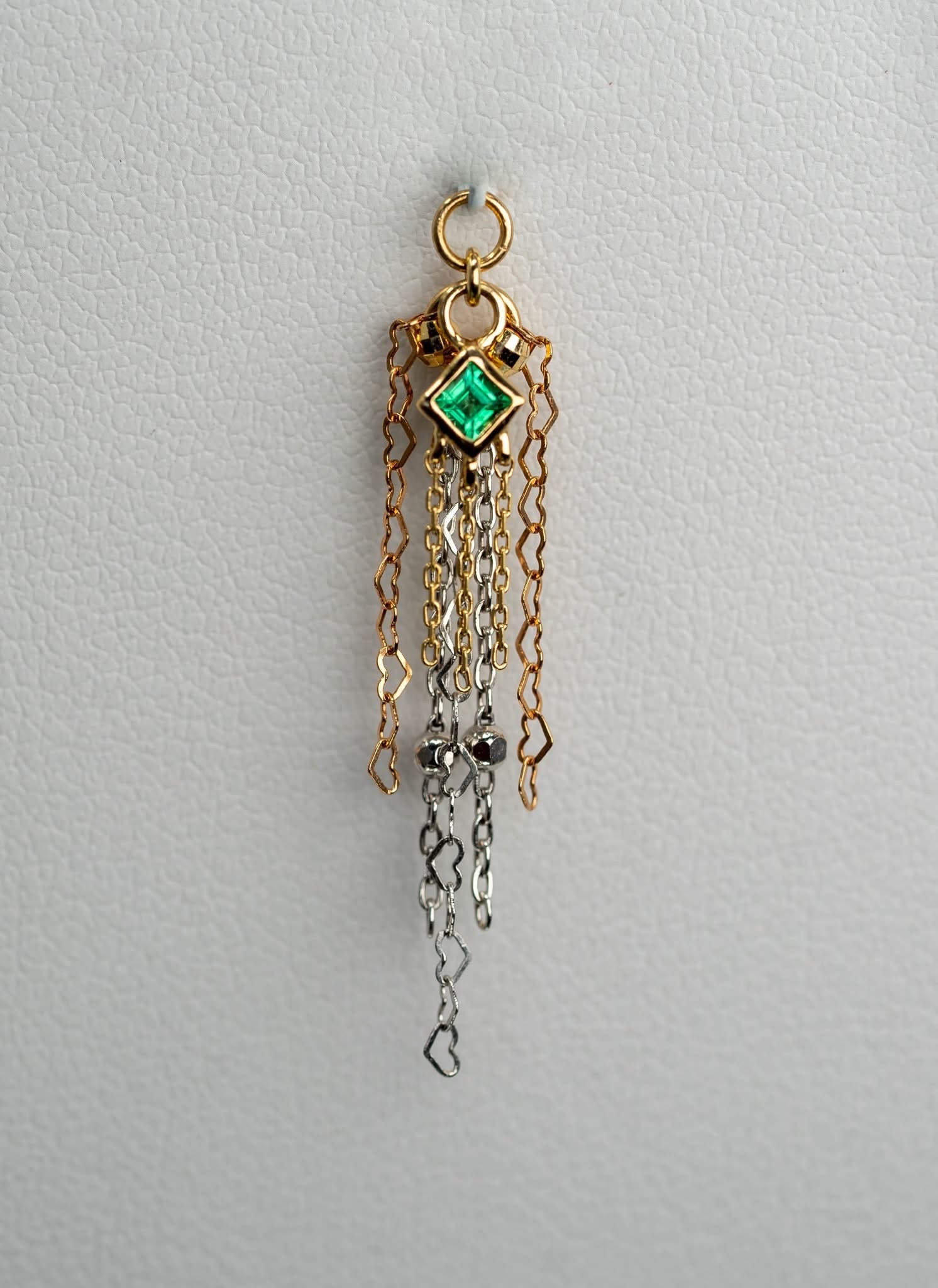 14k GOLD MIXED METAL - 8 CHAIN - PRINCESS CUT EMERALD CHARM
