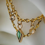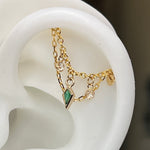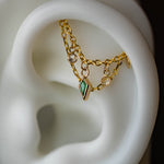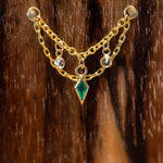 14k GOLD DOUBLE EAR CHAIN - GREEN ONYX KITE - WHITE SAPPHIRES