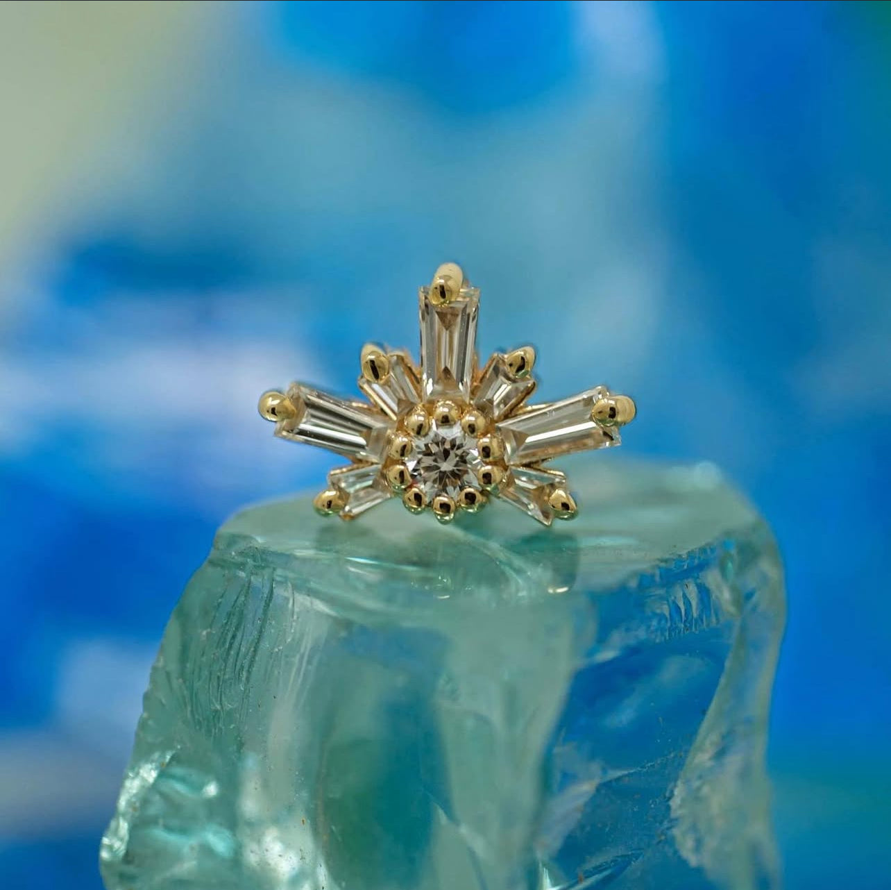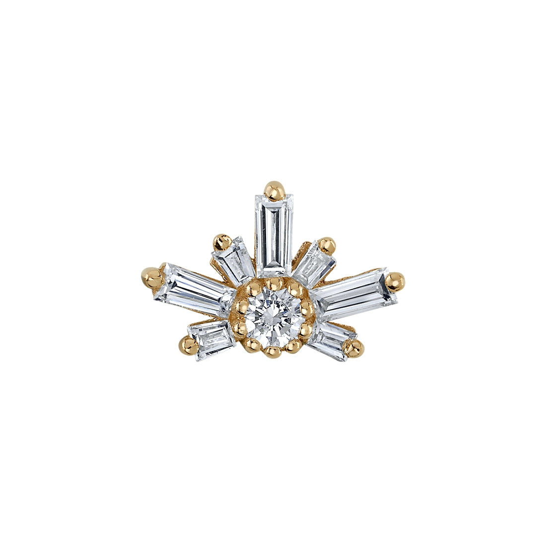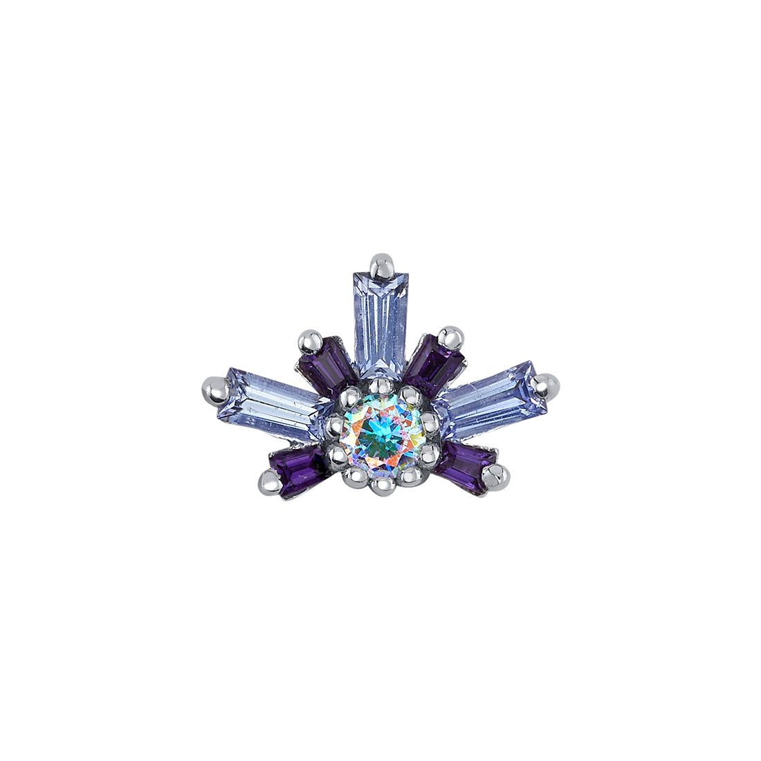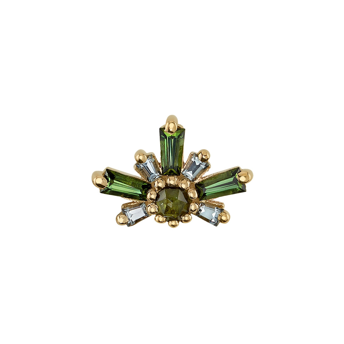 Also available in 14mm with 5x2x1mm and 3x2x1mm tapered baguettes with a 3mm round center gem