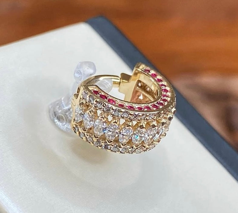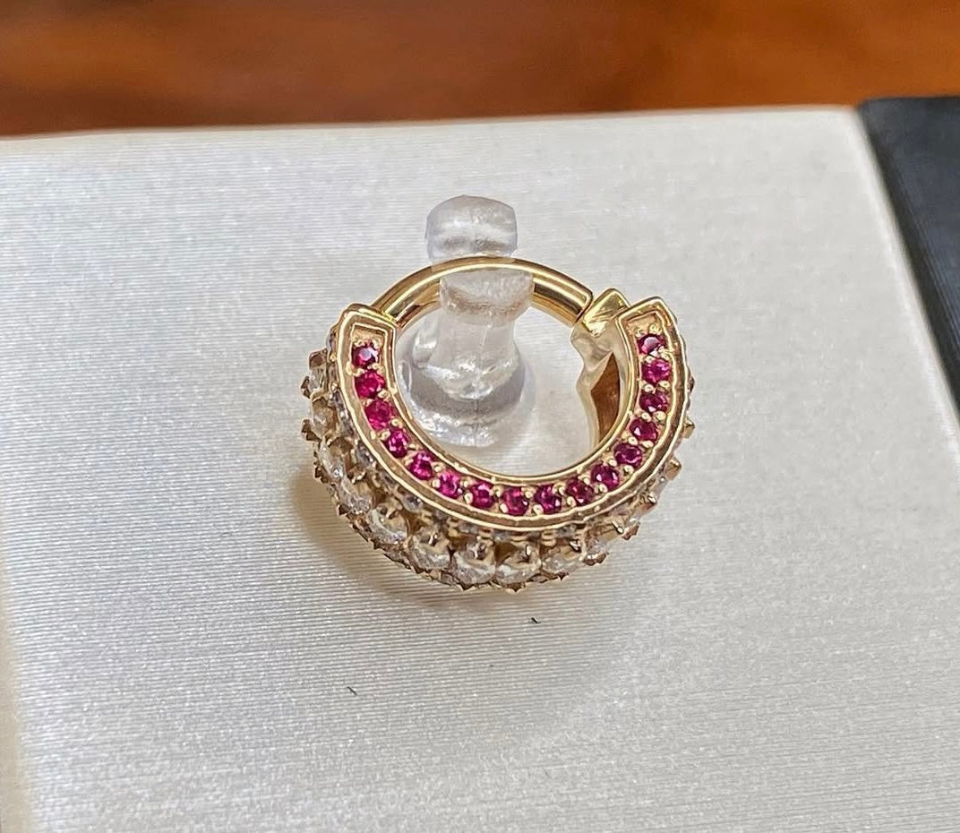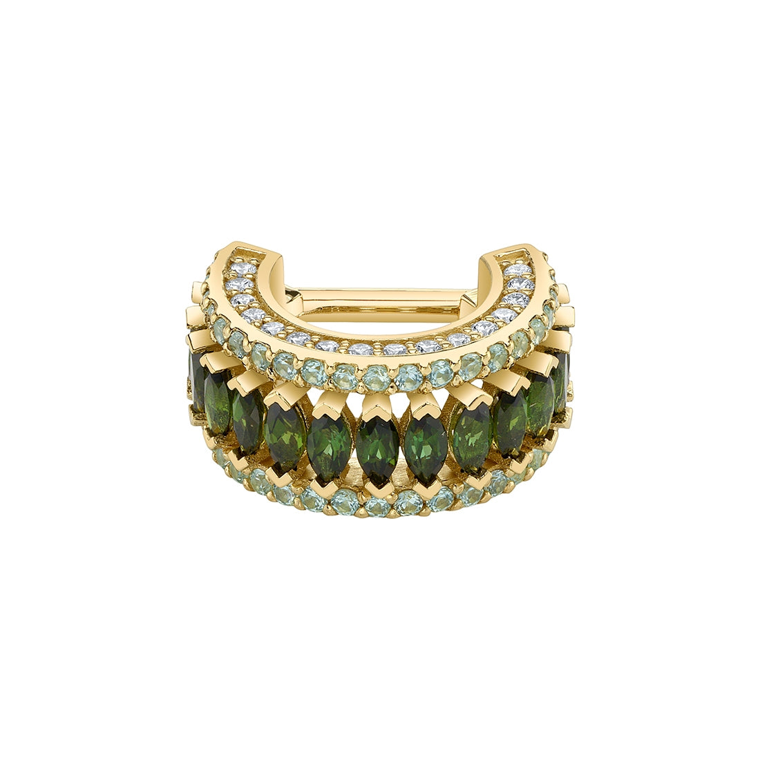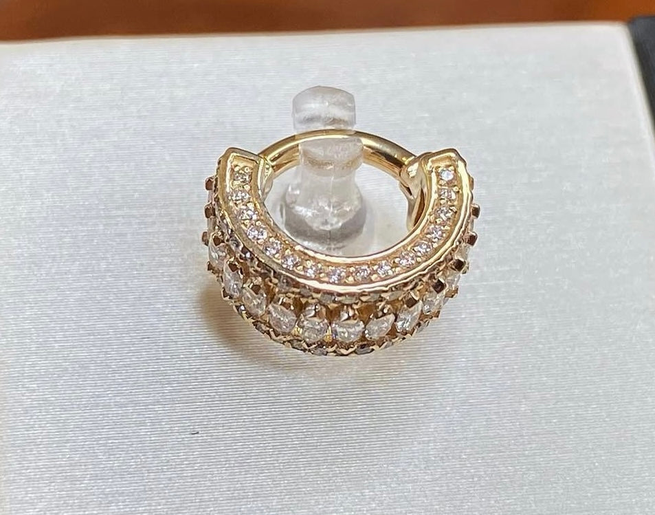 Hinged ring with forward, downward and reverse set 1mm gems and a row of downward facing 3x1.5mm marquise gems