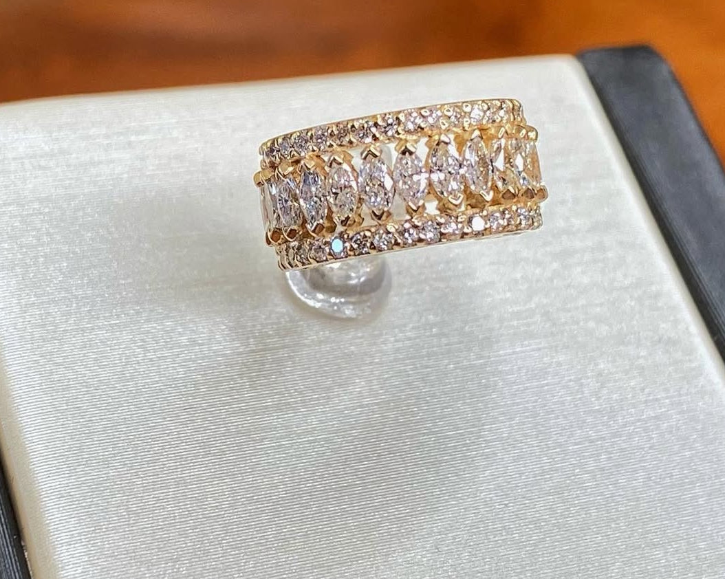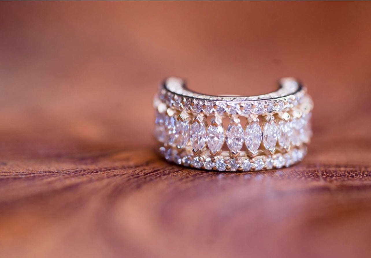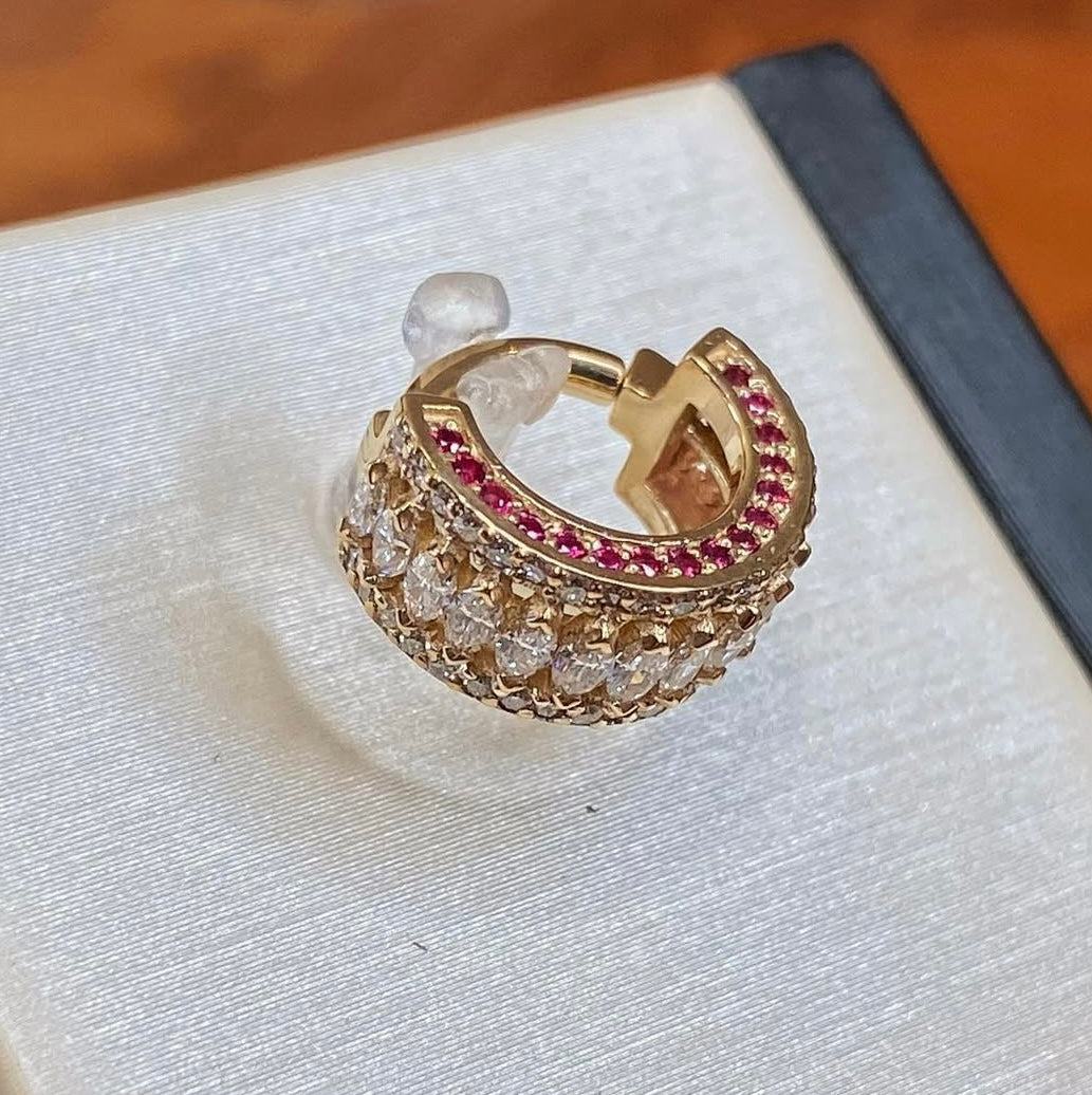 Hinged ring with forward, downward and reverse set 1mm gems and a row of downward facing 3x1.5mm marquise gems