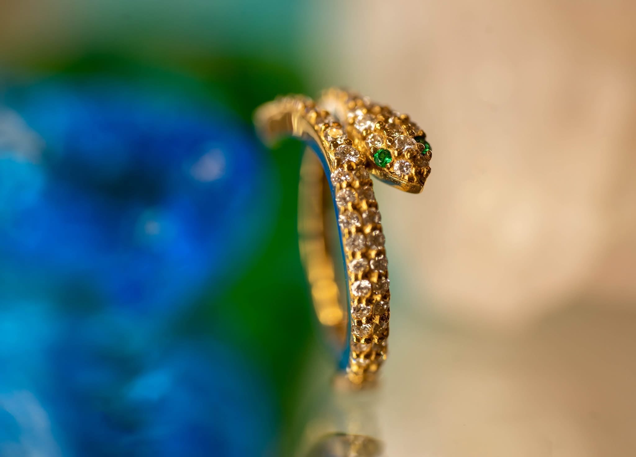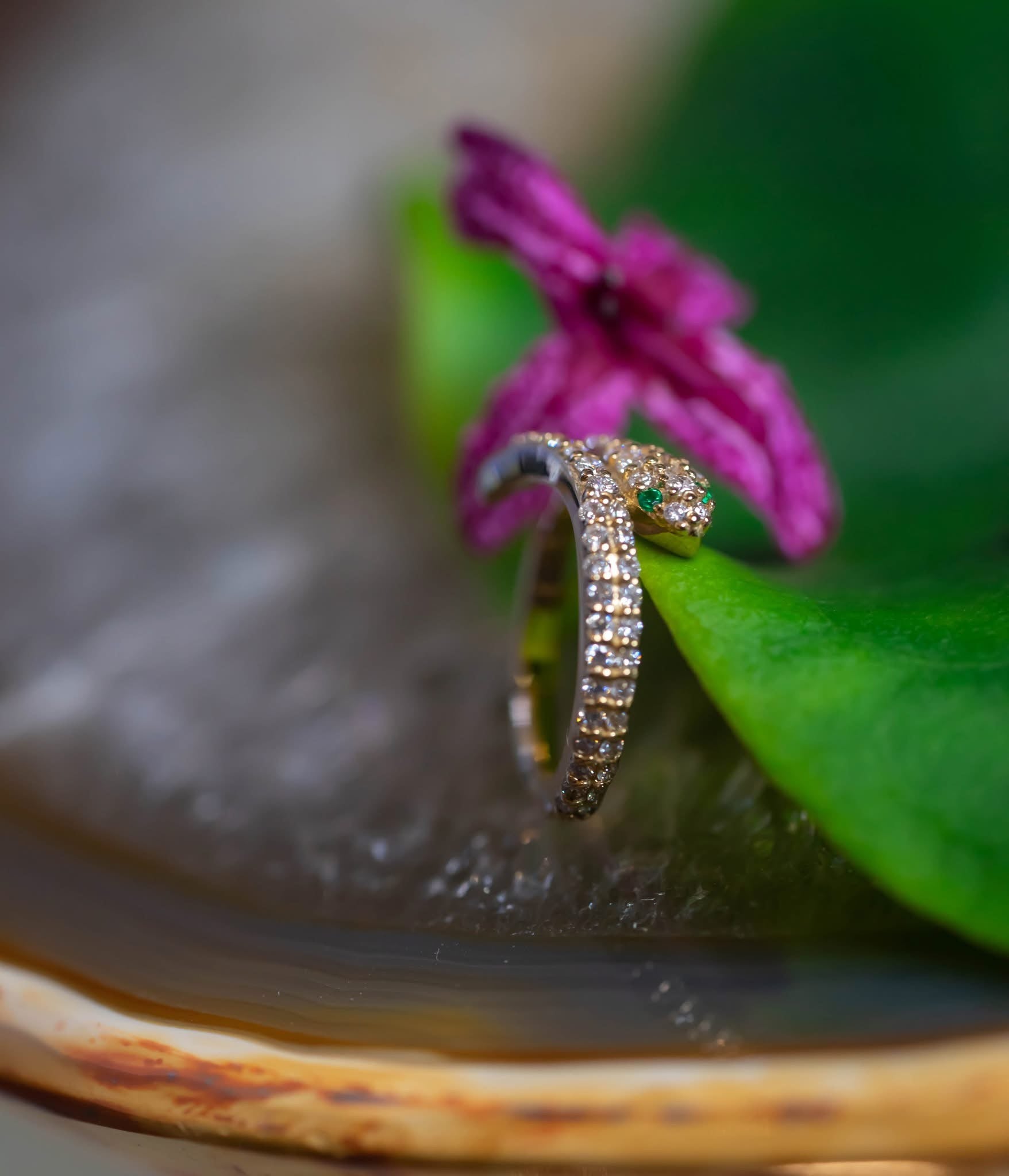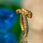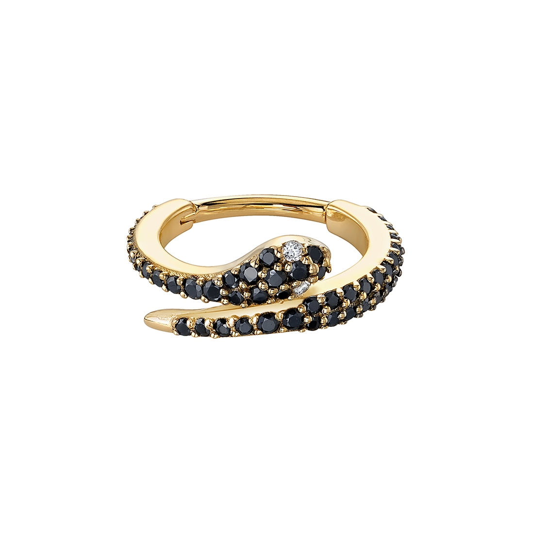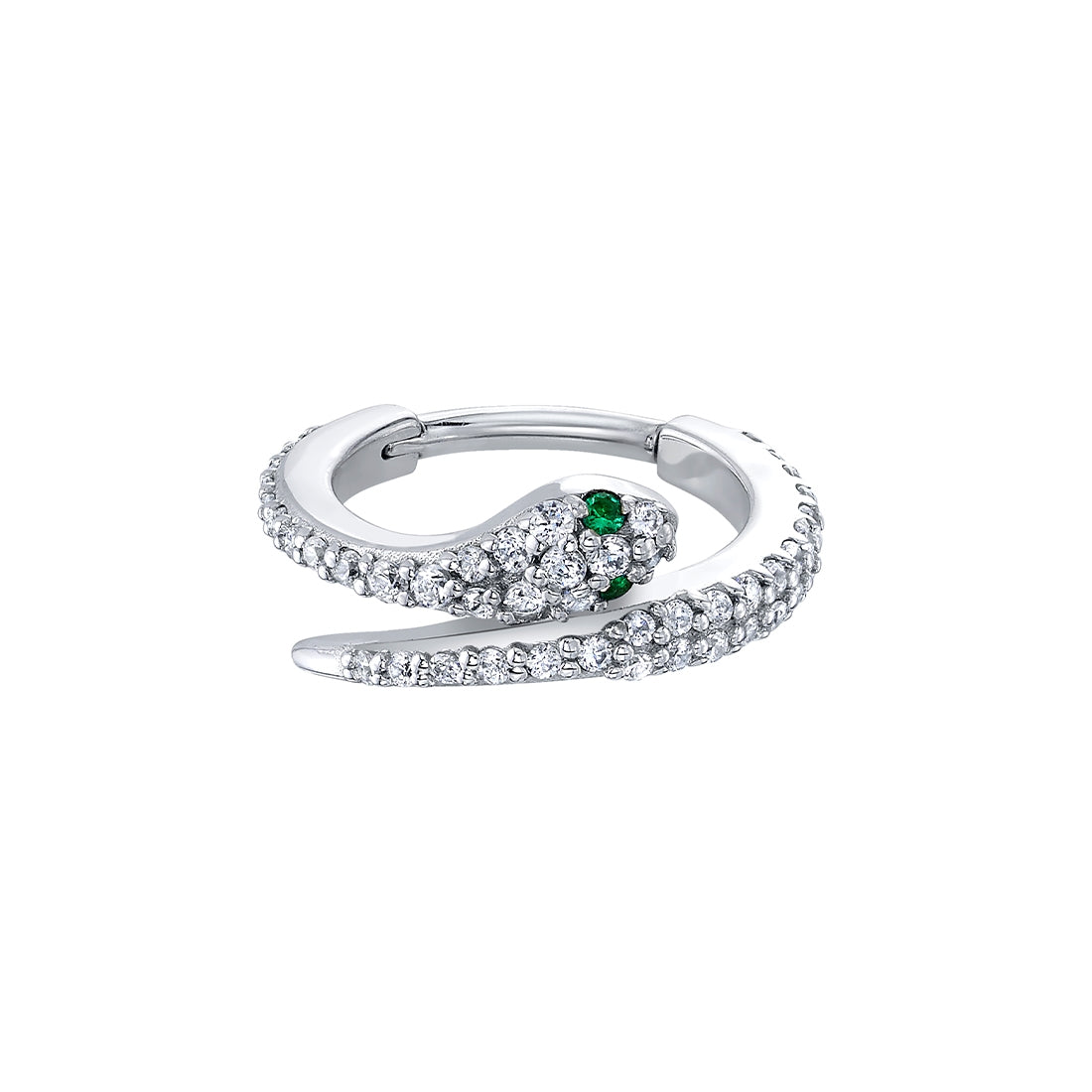 16g 7/16” Medusa - Snake Hinge Ring with (52) 1mm Gems and (10) 1.25mm Gems - 12GA Hinge ClosureEYES:1mm EMERALD AA DC (2),1mm White DIAMOND VS (52), 1.25mm White DIAMOND VS (8)