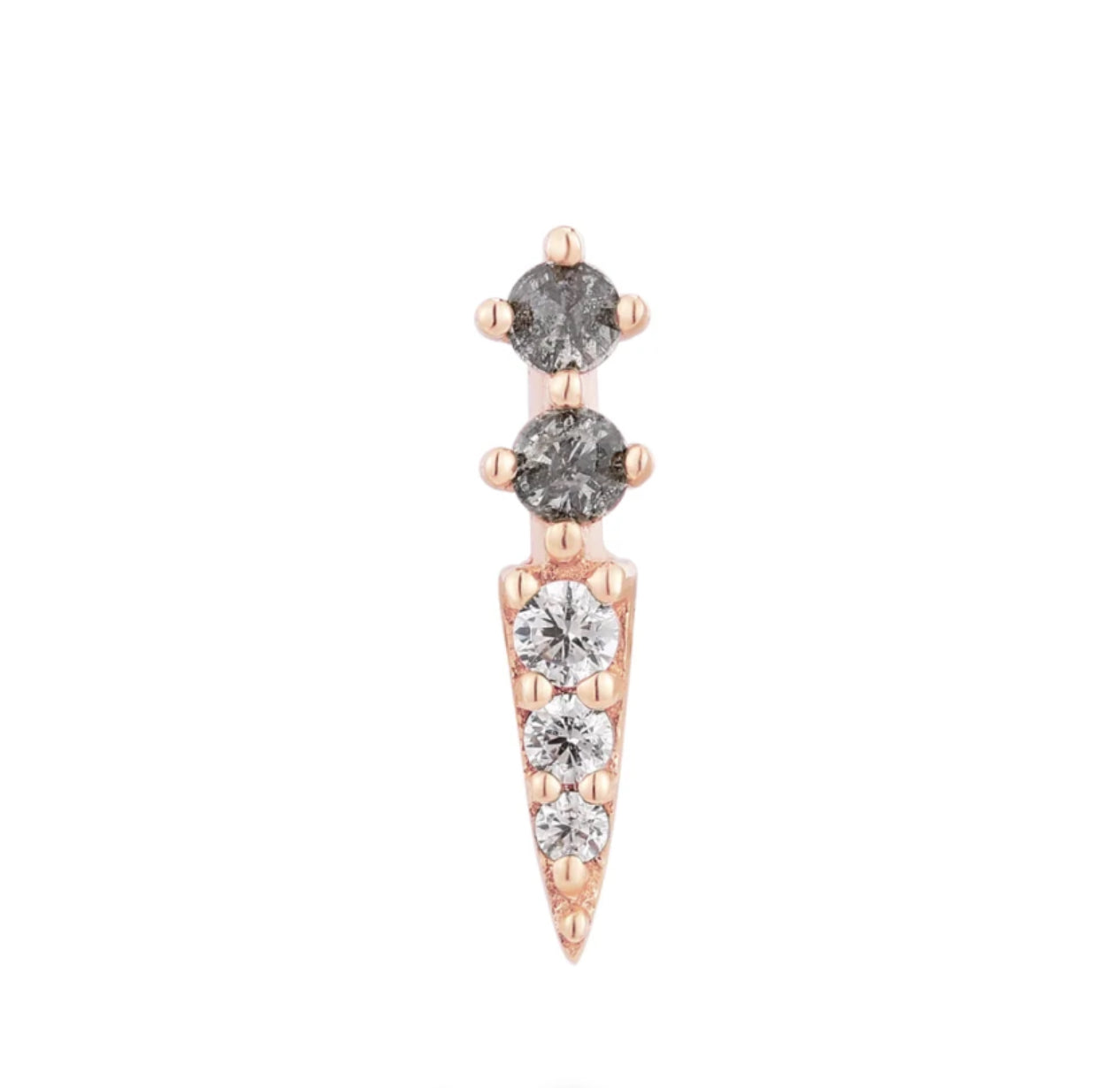 - Gemstone: (2) 1.5mm Grey Diamond, with (1) 1.3mm, (1) 1.1mm, and (1) 0.9mm CZs